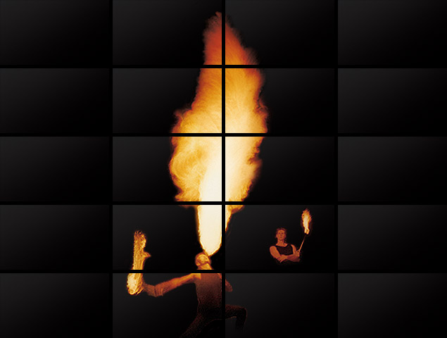 Von der Feuershow ist das Publikum immer auf ganz besondere Weise fasziniert. Der dramaturgisch genau gearbeitete Act und seine archaische Hauptzutat fordern immer wieder tosenden Beifall. Diese mystische Show der mehrfach ausgezeichneten Artisten Thorsten Barucha und Philip Prochnow mit Fackeljonglage, Feuerschwingen & Feuerspucken ist eine einzigartige Performance!